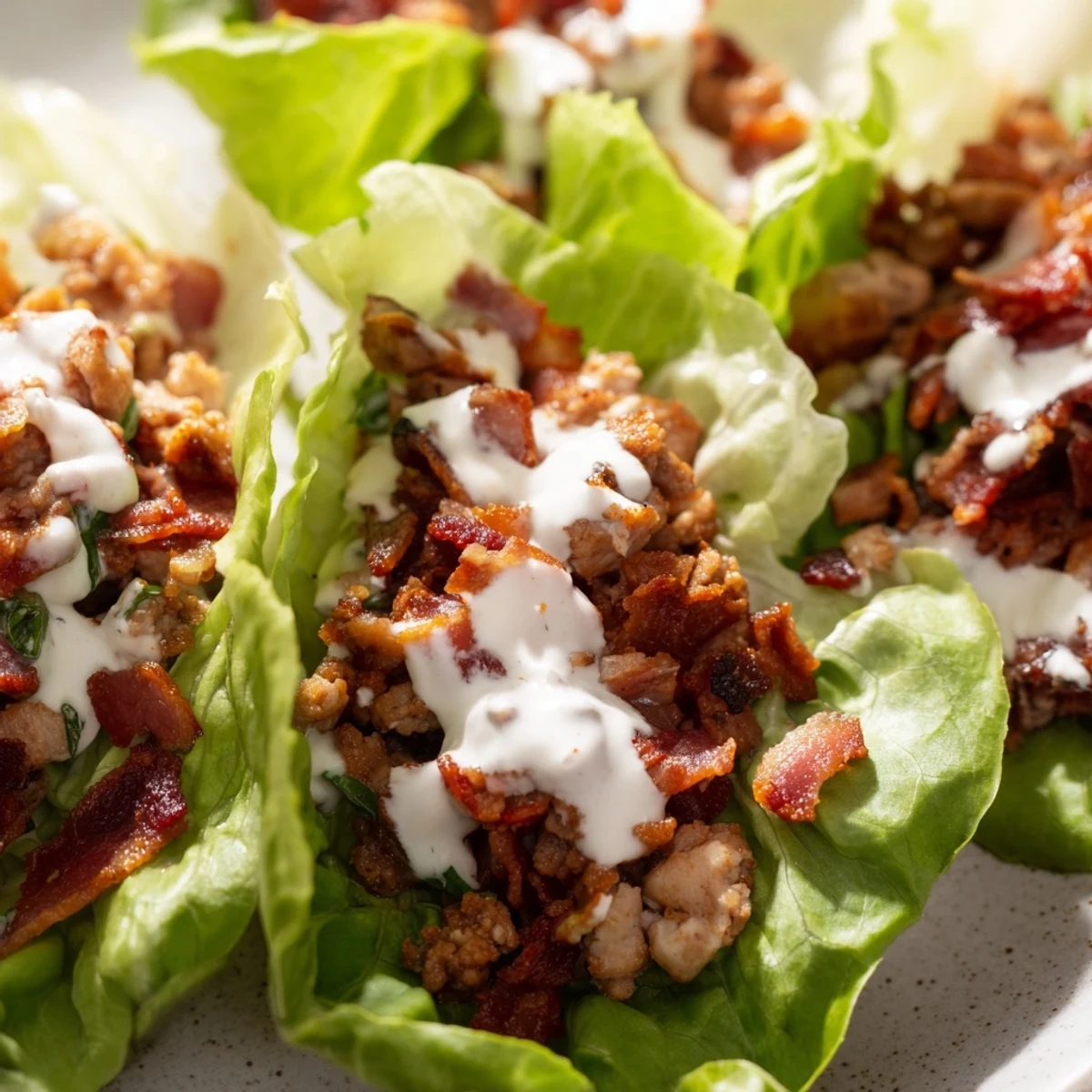 These loaded lettuce wraps deliver triple protein power with seasoned chicken breast, browned ground beef, and crispy bacon all nestled in crisp butter or romaine leaves. Fresh tomatoes, red onion, and cucumber add crunch and brightness, while cool ranch dressing ties everything together. The entire meal comes together in just 40 minutes and naturally fits gluten-free and low-carb lifestyles. Each wrap offers satisfying protein and rich flavors without the heaviness of traditional bread-based options.