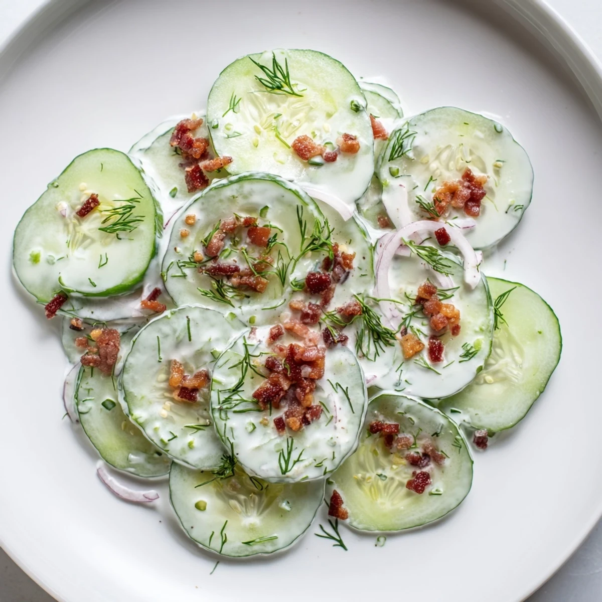 Last summer I served this at my sister outdoor birthday party and watched two people who claimed to hate cucumber salad go back for third helpings. The secret turned out to be letting those onions and cucumbers marinate in that tangy yogurt dressing while the bacon cooked filling the whole backyard with an irresistible smoky aroma that had everyone gathering around the kitchen island.