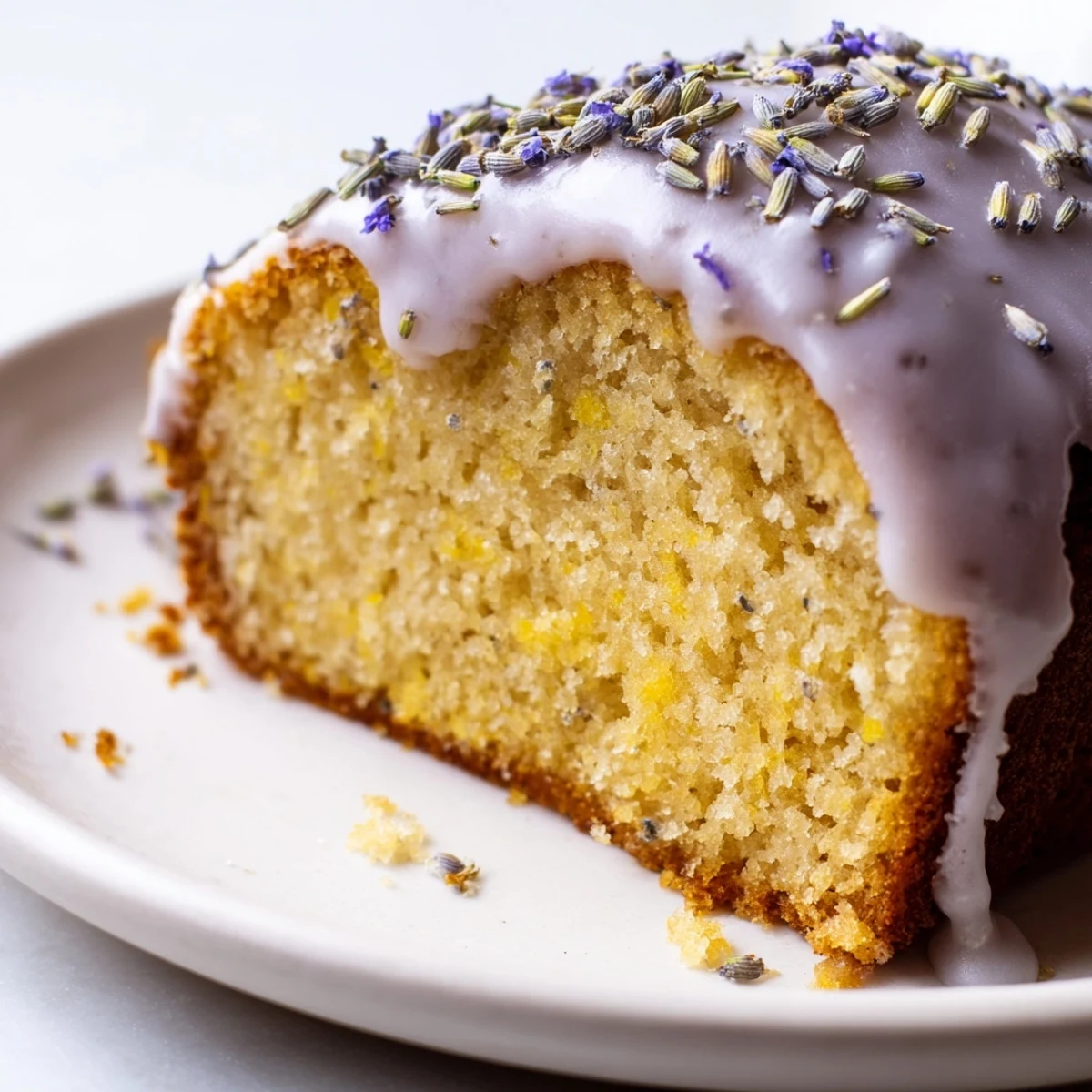 An optional lavender syrup soaks into the warm cake layers, intensifying the floral character. The finishing touch is a bright lavender-lemon glaze that adds both visual appeal and a citrusy contrast to the herbal undertones.