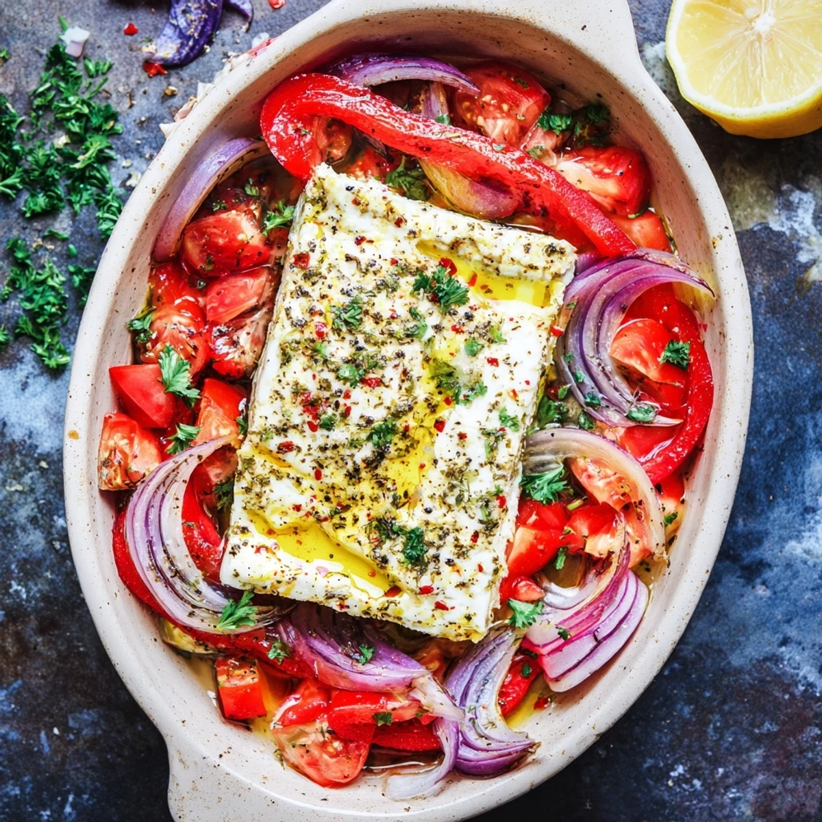 This Mediterranean starter transforms a block of creamy feta into a warm, golden delight. The cheese bakes alongside ripe tomatoes, sweet red onions, and bell peppers while olive oil and smoked paprika create aromatic depth. Fresh chili brings the heat, while oregano adds classic Greek notes. Ready in just 30 minutes, this dish emerges from the oven with tender vegetables and slightly crisp feta edges. Serve with warm pita bread and lemon wedges for an authentic mezze experience.