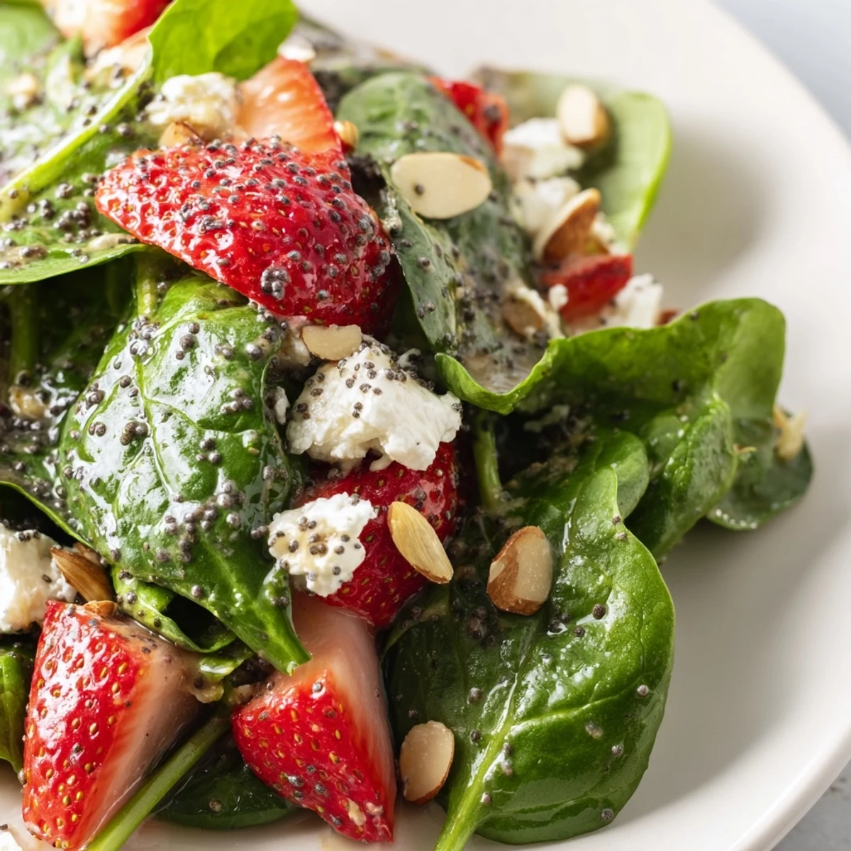 This refreshing combination brings together sweet strawberries and tender baby spinach with a homemade tangy balsamic poppy seed dressing. Ready in just 15 minutes, it's perfect for light spring and summer dining. The salad features crunchy toasted almonds, sunflower seeds, and creamy feta for texture variety. You can easily customize it with grilled chicken, chickpeas, or swap feta for goat cheese. The homemade dressing uses simple pantry staples like balsamic vinegar, honey, Dijon mustard, and poppy seeds. It's naturally vegetarian and gluten-free, making it suitable for various dietary needs.